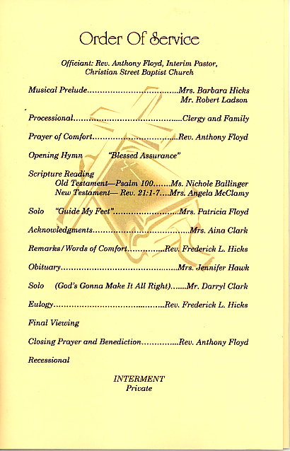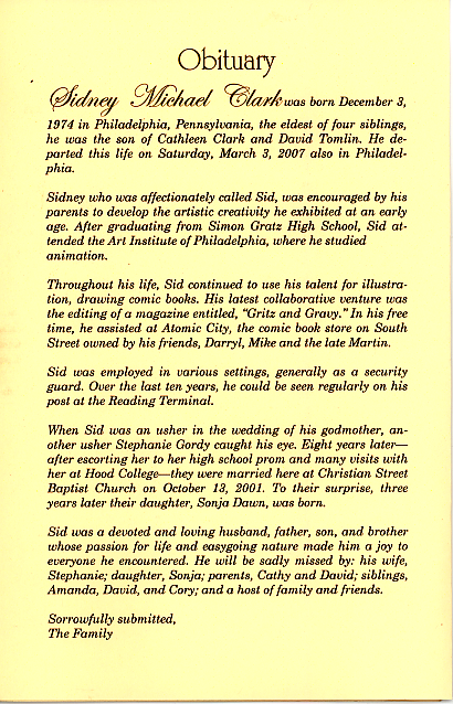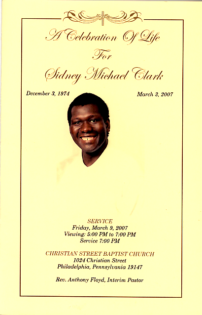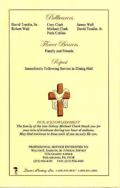 These images are the pages of the program made for his "home going" on March 9th, 2007. Sid's service was standing room only, and I personally know of many, many more who could not attend.